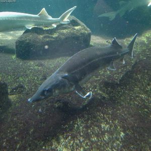 As with the catfish, these leviathans have no teeth with which to seize prey, but that doesn’t stop some of the bigger specimens from swallowing large fish – such as a whole salmon – in one go. They have elongated bodies which have a distinct lack of scales, but are partially covered with bony plates and also have four barbels.